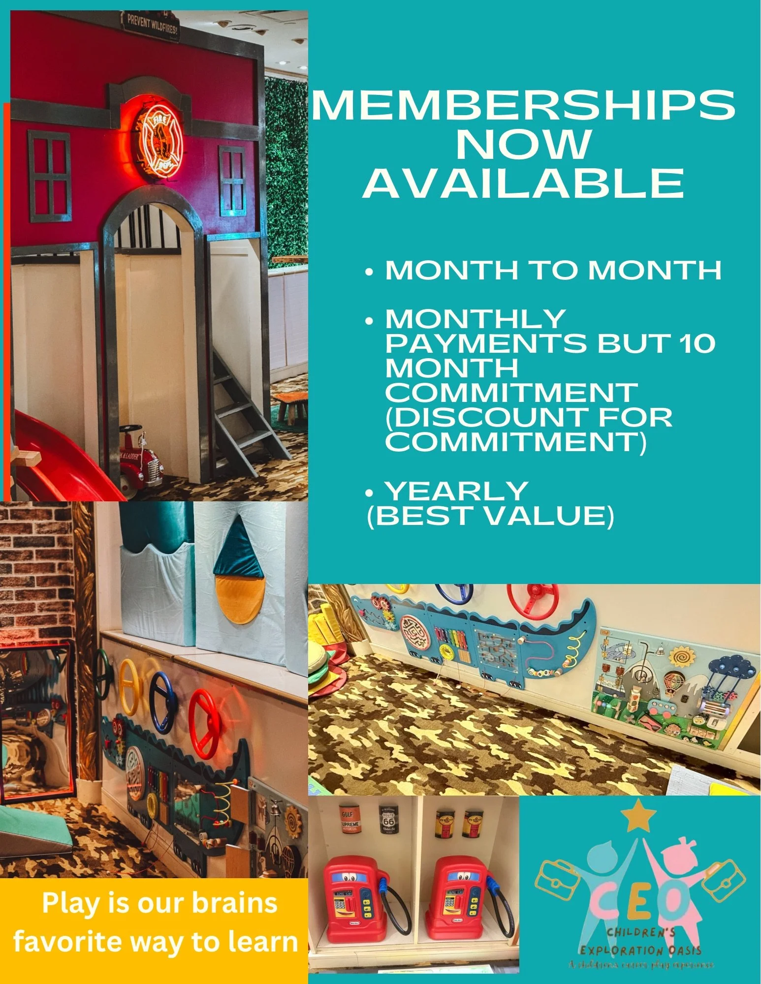 CEO offers an engaging & Interactive play experience for parents to enjoy with their young children. The museum is set up for children from crawlers to age 10, with several different career and daily life play experiences, as well as interactive sensory exhibits.